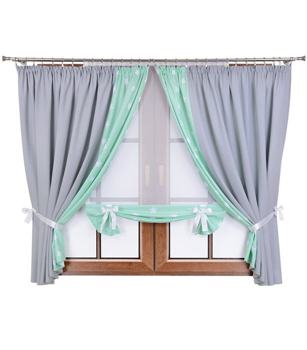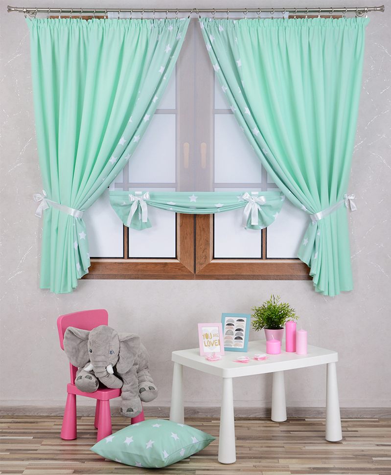 Zasłony są uszyte z doskonałej jakości jednokolorowego matowego materiału oraz tkaniny z nadrukiem w dziecięcych, intensywnych wersjach kolorystycznych. Panel wykonany został z wysokiej jakości białego woalu, dół wykończony jest tkaniną z nadrukiem. Elegancji nadają satynowe tasiemki do podwiązania, które tworzą urocze kokardki. Do panelu dołączamy obciążnik (gratis!), dzięki któremu doskonale się układa. Komplet nada niepowtarzalny klimat w pokoju dziecka, będzie wyglądać olśniewająco i nadawać blasku w pokoju dziecięcymi.