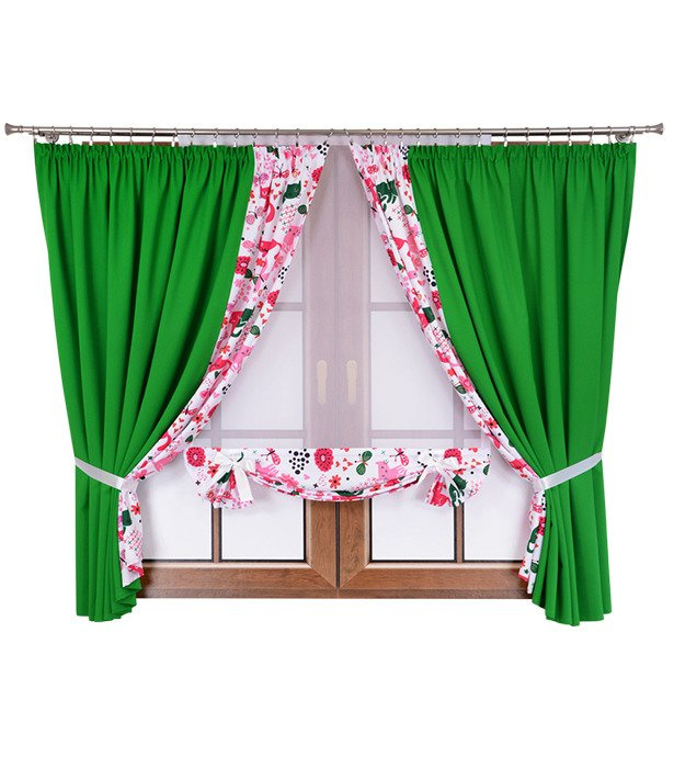 Zasłony są uszyte z doskonałej jakości jednokolorowego matowego materiału oraz tkaniny z nadrukiem w dziecięcych, intensywnych wersjach kolorystycznych. Panel wykonany został z wysokiej jakości białego woalu, dół wykończony jest tkaniną z nadrukiem. Elegancji nadają satynowe tasiemki do podwiązania, które tworzą urocze kokardki. Do panelu dołączamy obciążnik (gratis!), dzięki któremu doskonale się układa. Komplet nada niepowtarzalny klimat w pokoju dziecka, będzie wyglądać olśniewająco i nadawać blasku w pokoju dziecięcymi.