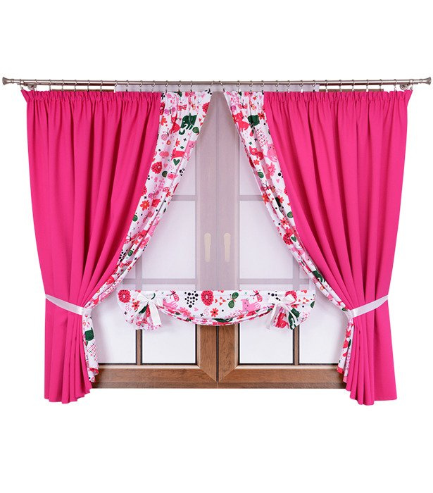 Zasłony są uszyte z doskonałej jakości jednokolorowego matowego materiału oraz tkaniny z nadrukiem w dziecięcych, intensywnych wersjach kolorystycznych. Panel wykonany został z wysokiej jakości białego woalu, dół wykończony jest tkaniną z nadrukiem. Elegancji nadają satynowe tasiemki do podwiązania, które tworzą urocze kokardki. Do panelu dołączamy obciążnik (gratis!), dzięki któremu doskonale się układa. Komplet nada niepowtarzalny klimat w pokoju dziecka, będzie wyglądać olśniewająco i nadawać blasku w pokoju dziecięcymi.