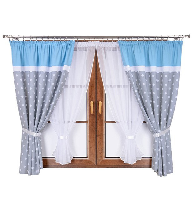 Zestaw dziecięcy zasłony w groszki firany z woalu Mika II wzór 5 kropki