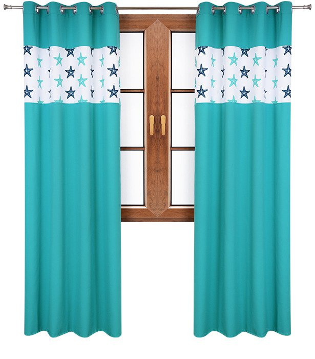 Zasłona matowa duo gwiazdki Cindy wzór U1 turkusowa