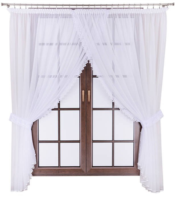 Urocza zakładana firana z dwoma podwiązkami jest uszyta z wysokiej jakości białego woalu. Wykończona jest atłasową lamówką, wewnętrzne brzegi zostały obszyte gipiurą. Pięknie układająca się firanka stworzy niepowtarzalny klimat w każdym wnętrzu zarówno klasycznym, nowoczesnym jak i glamour. Firana jest niezwykle elegancka, idealna do salonu, kuchni, sypialni czy pokoju dziecka - wszędzie będzie wyglądać olśniewająco i nadawać blasku Twojemu domowi.