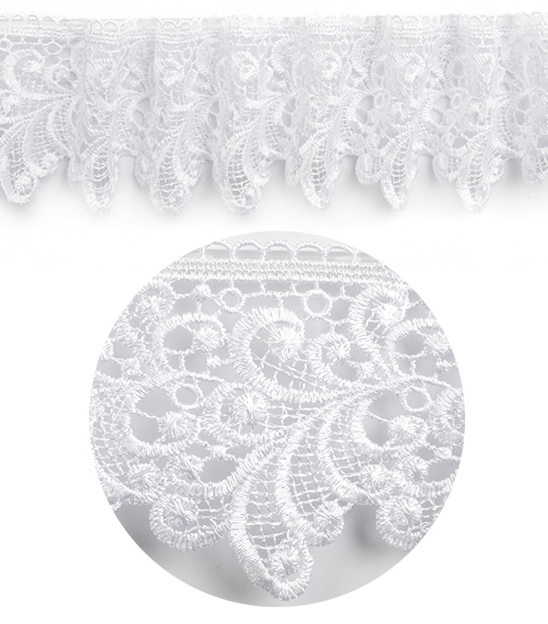 Firana biała z woalu gładkiego ozdobiona gipiurą Ofelia Sale S62