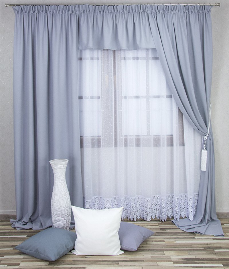 Ozdobny lambrekin z tkaniny matowej błękitny