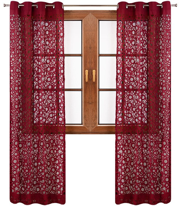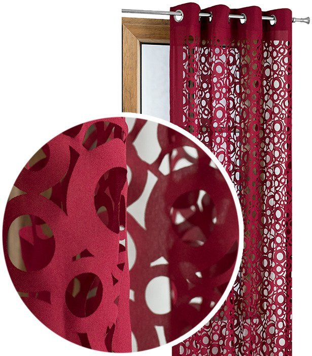 Zasłona bordowa w ażurowe wycinane laserowo wzory koła