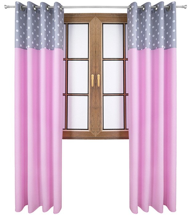 Zasłona jasno różowa matowa duo groszki Rubi 2 wzór E1 kropki