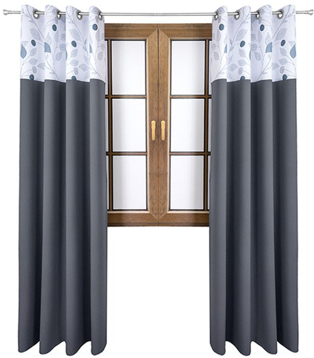 Zasłona ciemno szara matowa duo liście Rubi 2 wzór C1