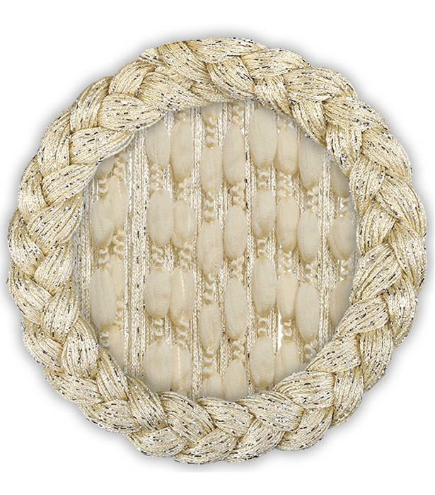 Makarony z puchatymi kuleczkami sznurki z srebrną nicią ecru