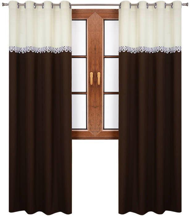 Zasłona duo z gipiurą Ligia ecru gorzka czekolada wzór 4