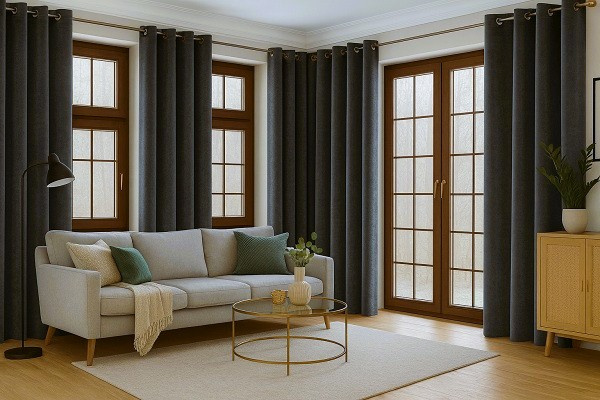 Zasłony o szerokości 290 cm są łączone z dwóch części