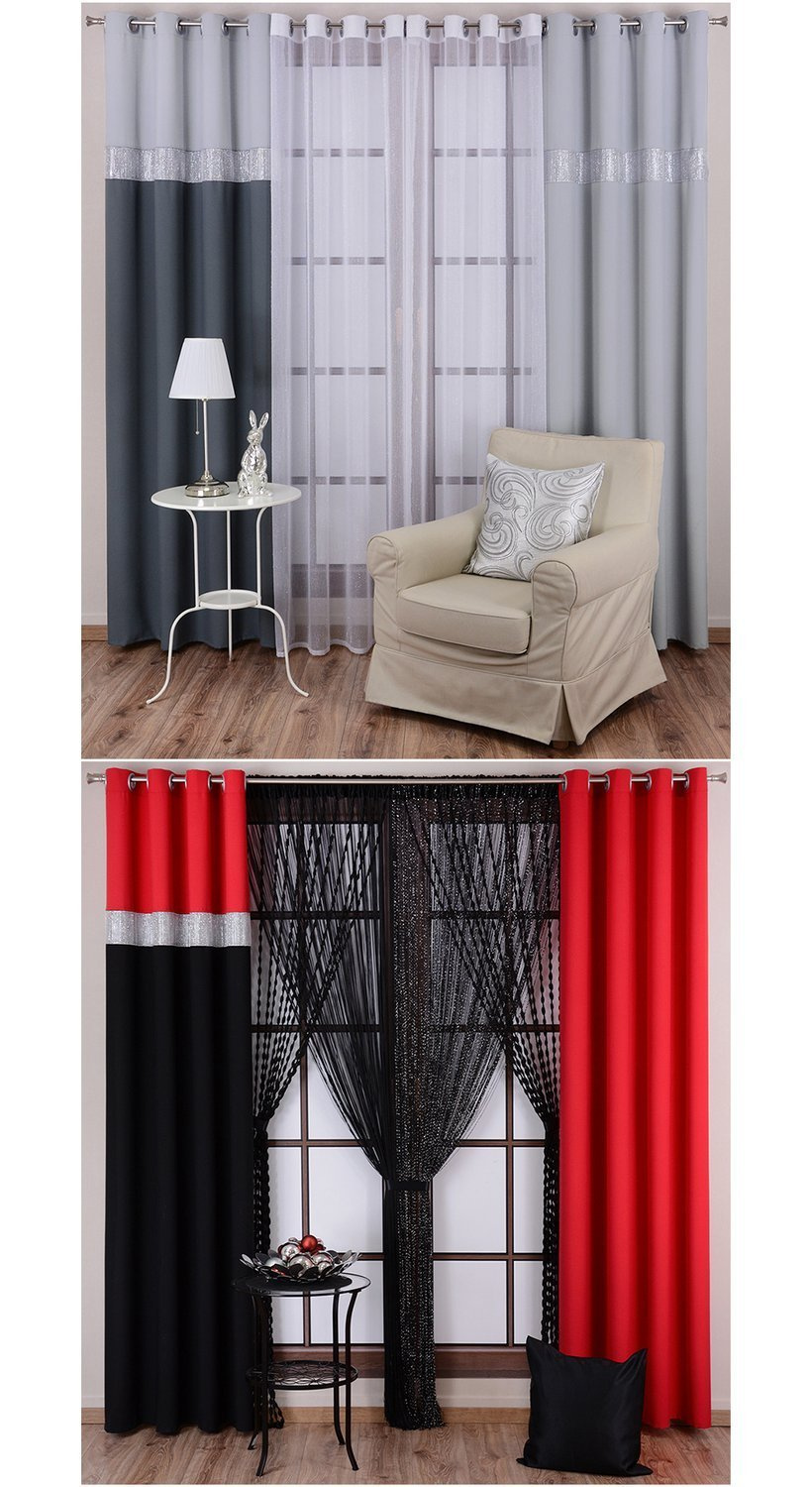Klasyczna zasłona wykonana została wysokiej jakości gładkiej tkaniny matowej w dwóch kolorach o gęstym splocie, wykończona bogato zdobioną taśmą z cyrkoniami w kolorze srebrnym, która nadaje wnętrzu niepowtarzalny charakteru. Swym nowoczesnym wyglądem podkreśli wnętrze każdego stylowego pomieszczenia, tworząc przy tym subtelny, elegancki wystrój. Pięknie układająca się zasłona stworzy niepowtarzalny klimat w każdym wnętrzu zarówno klasycznym, nowoczesnym jak i glamour. Zasłona jest niezwykle dekoracyjna, idealna do salonu, kuchni, sypialni czy pokoju dziecka - wszędzie będzie wyglądać olśniewająco i nadawać blasku Twojemu domowi.