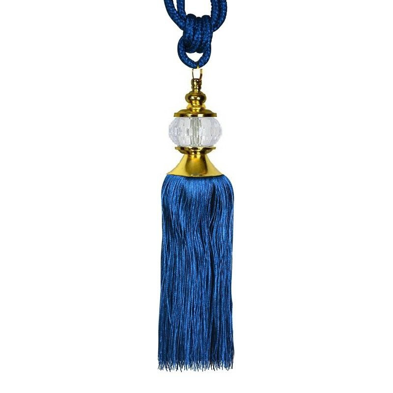 Ekskluzywny chwost do zasłon z kryształem granatowy złote wykończenie