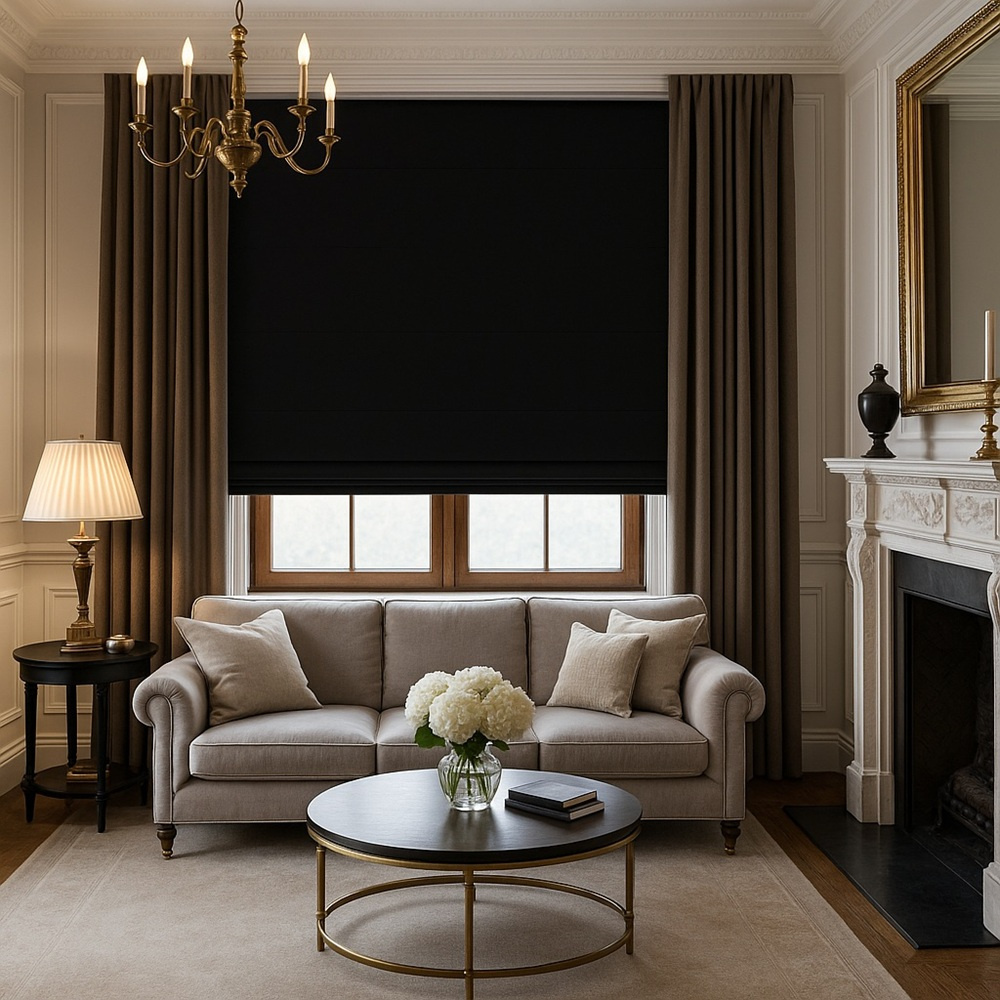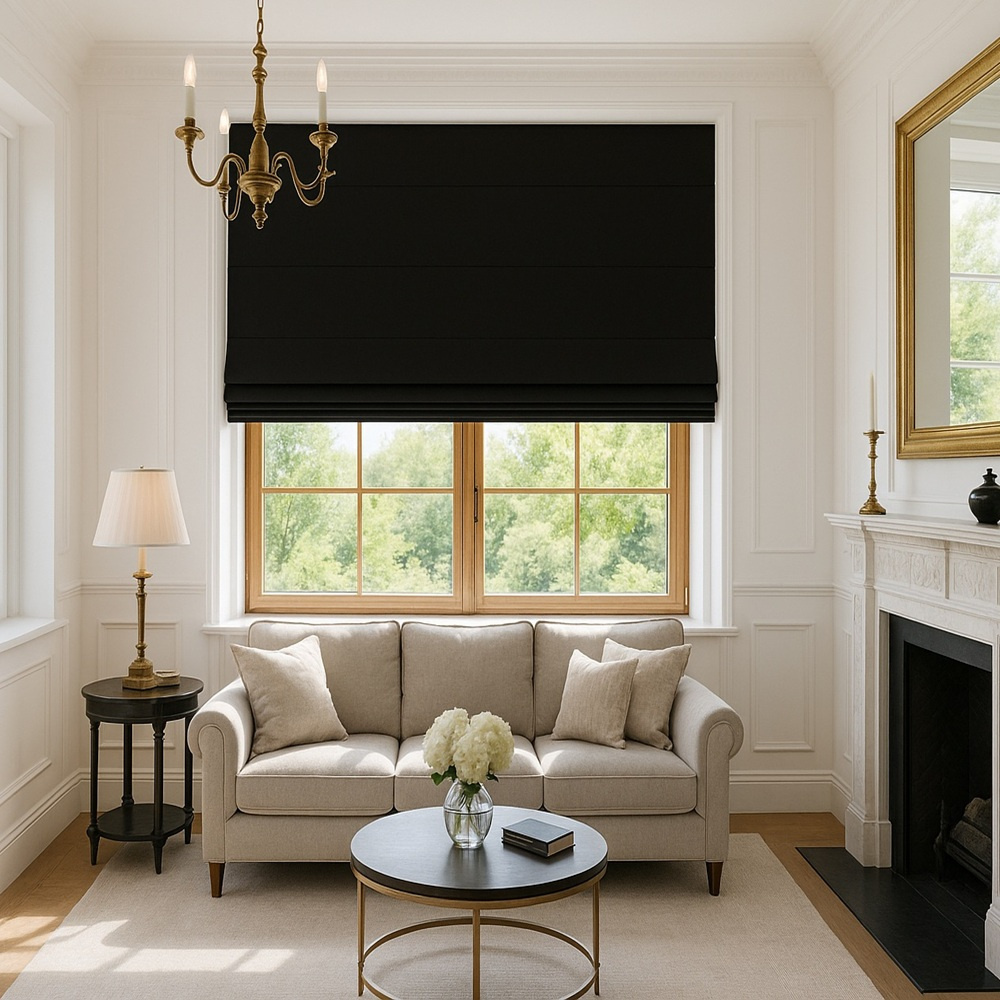 Roleta rzymska czarna z aksamitnego weluru