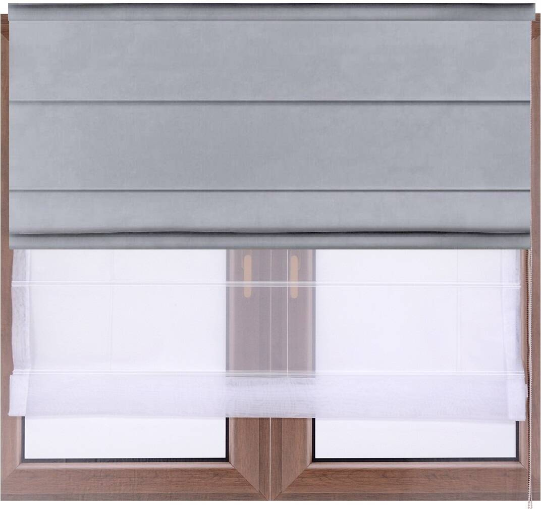 Podwójna roleta rzymska łączy w sobie funkcję firany i zasłony. Rolety rzymskie to prosty, a zarazem niezwykle dekoracyjny element wyposażenia Twojego mieszkania. Wykonane są z doskonałej jakości aksamitnego weluru oraz białego woalu, posiadają wszyte specjalne fiszbiny, które przy podciąganiu tworzą dekoracyjne fałdy. Sznurki przeciągnięte są z tyłu rolety poprzez taśmę do rolet rzymskich. Posiadają 2 niezależne systemy sznurkowe, służący do regulacji wysokości zarówno firany jak i zasłony. Wyposażony jest on także w mechanizm samoblokujący, tzn. podciągając roletę automatycznie zatrzymujemy ją na danej wysokości. Roleta swym nowoczesnym wyglądem podkreśli wnętrze każdego stylowego pomieszczenia, tworząc przy tym subtelny, elegancki wystrój. Roleta jest niezwykle elegancka, idealna do salonu, kuchni czy sypialni - wszędzie będzie wyglądać olśniewająco i nadawać blasku Twojemu domowi
