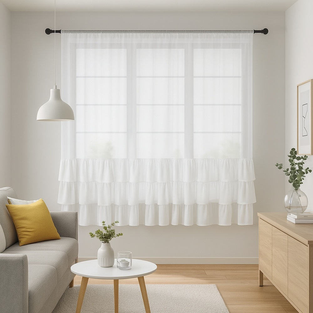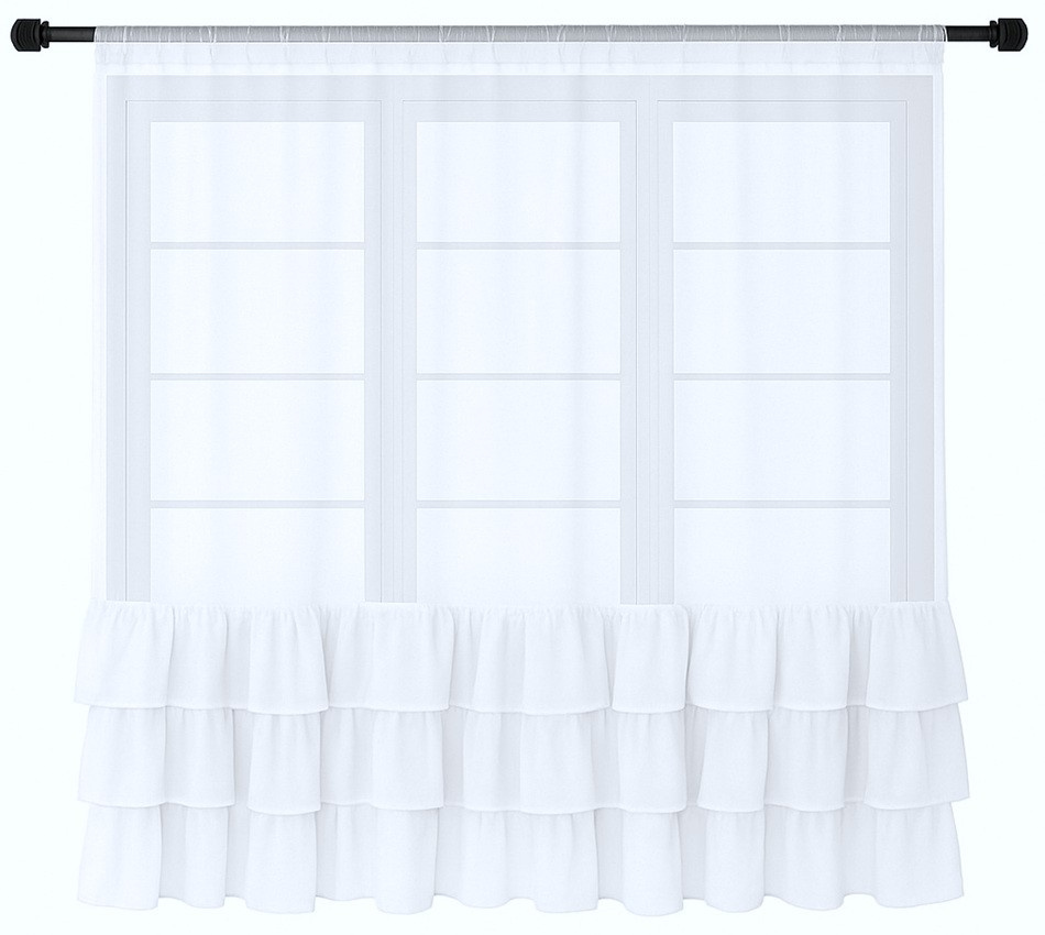 Śliczna firana z białego woalu Carmen II wykończona uroczymi falbanami