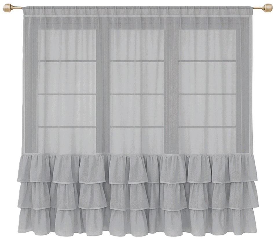 Opinie o Śliczna firana szara z woalu Carmen II wykończona uroczymi falbanami