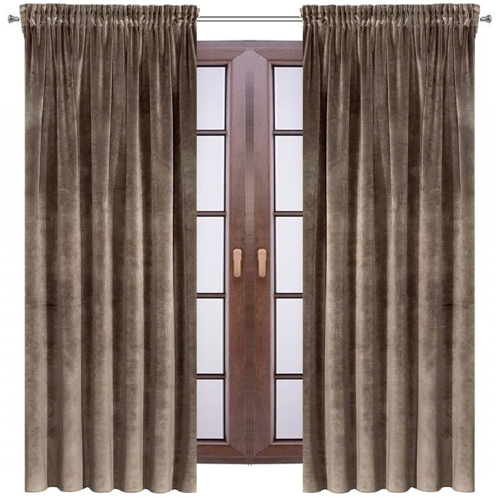 Elegancka zasłona welurowa welwet ciemny beżowy zaciemniająca welur aksamitny
