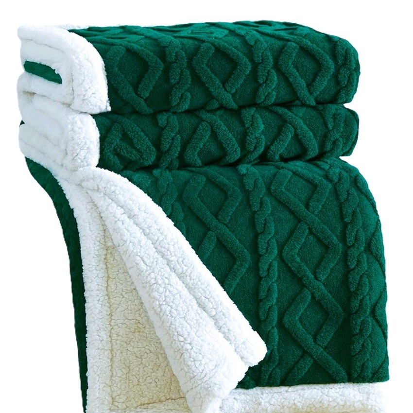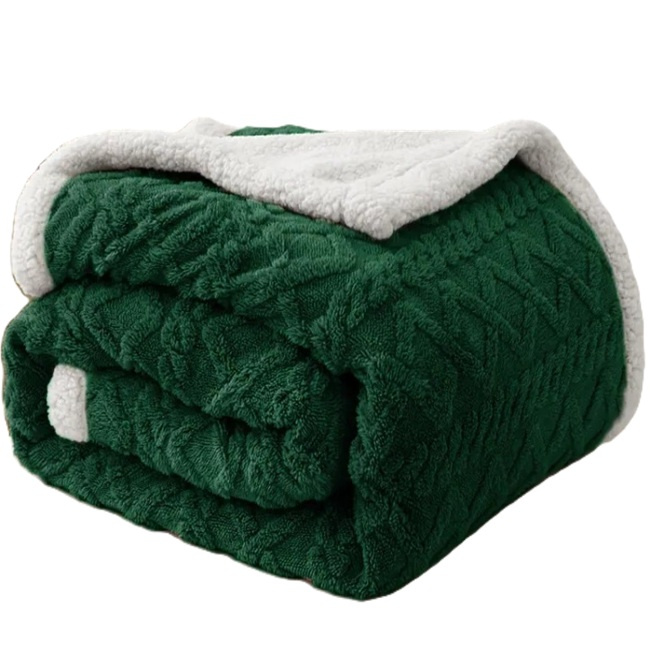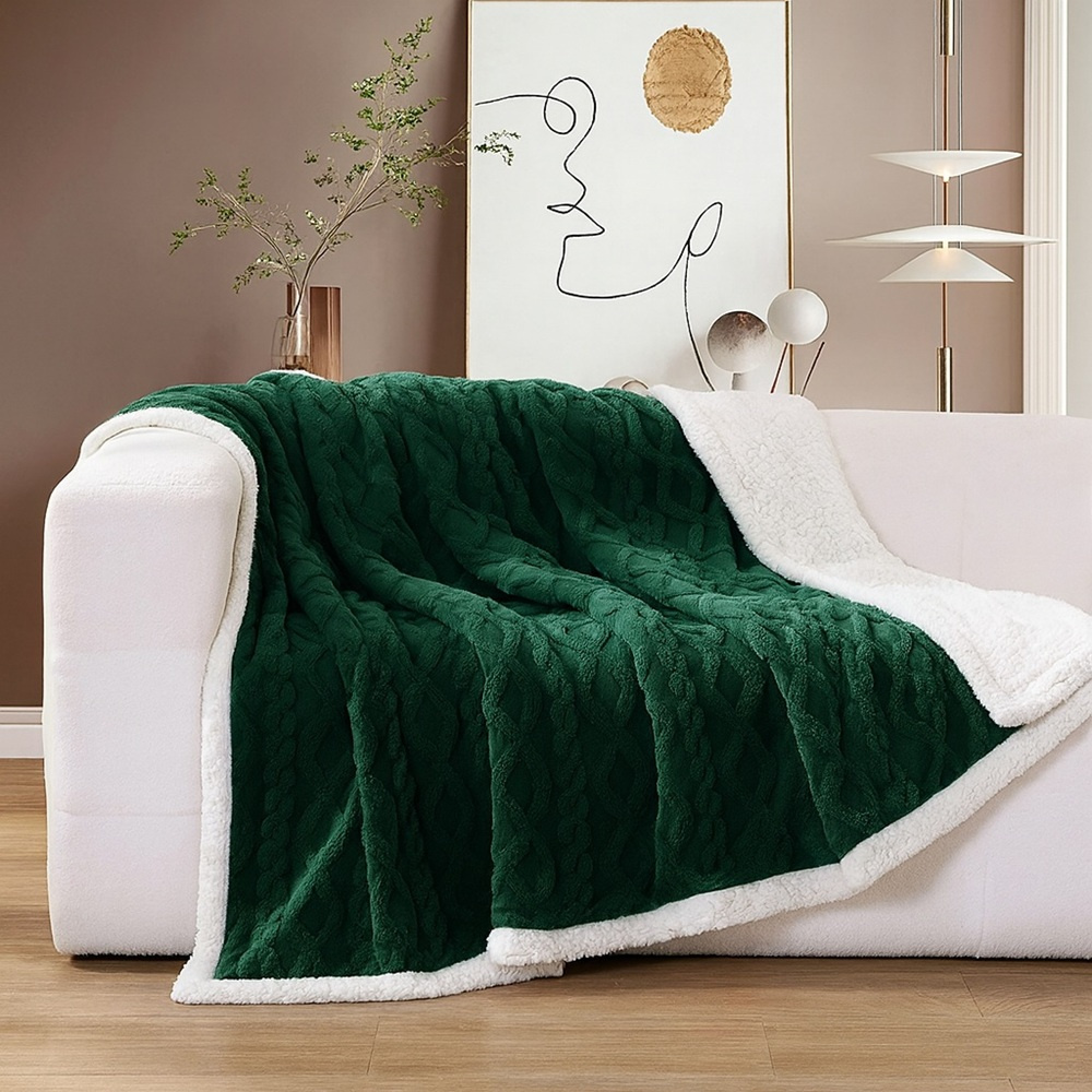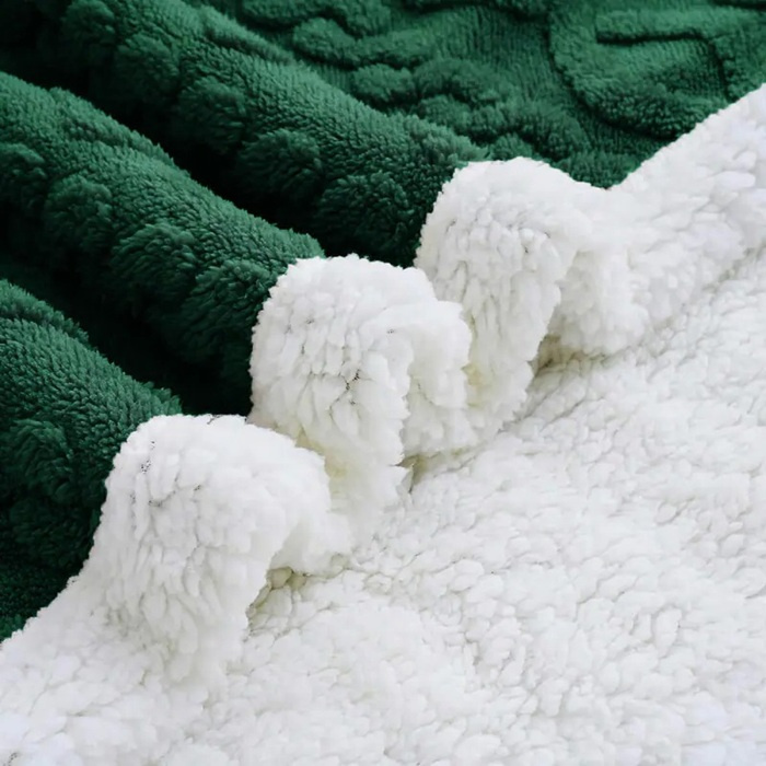Gruby koc z barankiem narzuta pled ciepły dwustronny wytłaczany butelkowa zieleń