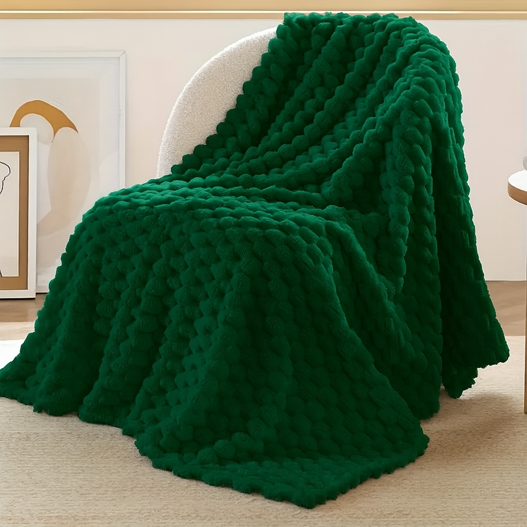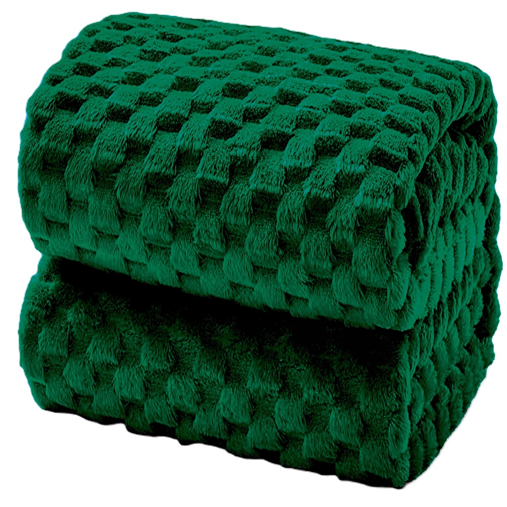 Gruby koc wytłaczany wzór efekt 3D narzuta pled na łóżko kanapę miękki butelkowa zieleń