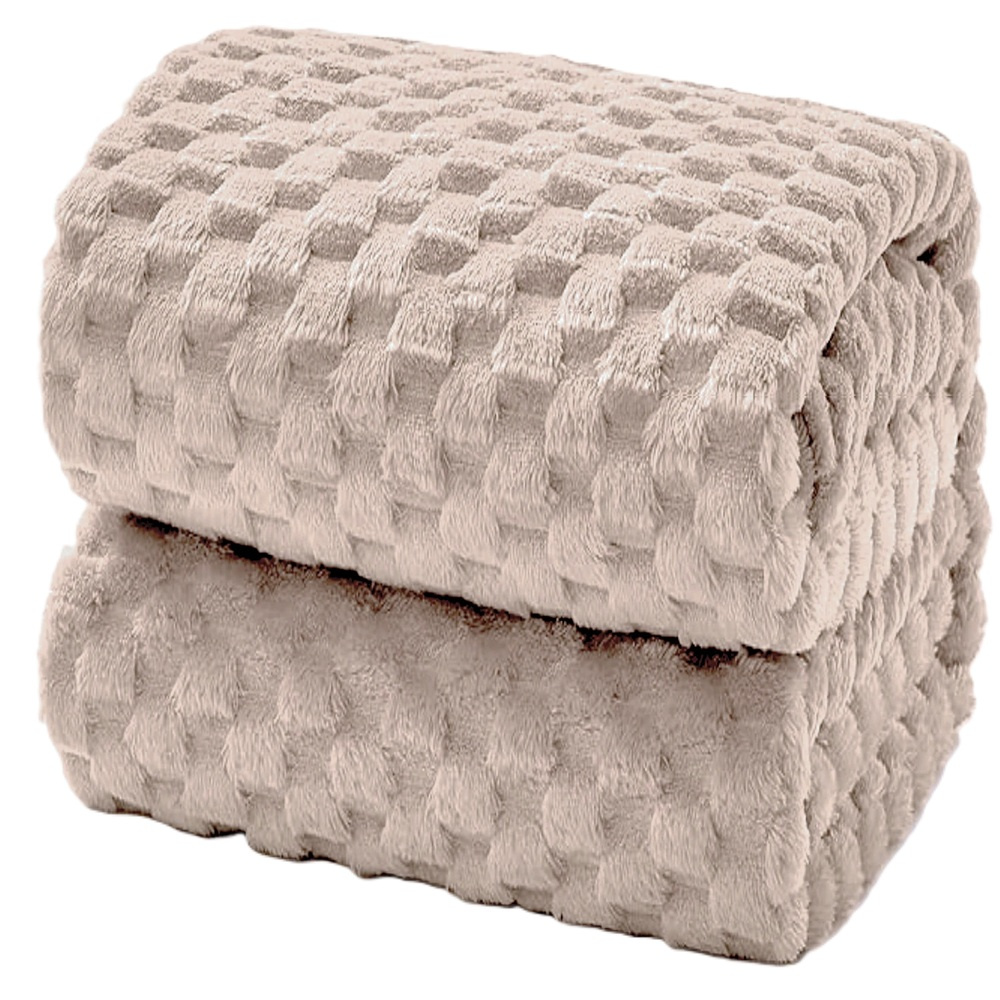 Gruby koc wytłaczany wzór efekt 3D narzuta pled na łóżko kanapę miękki jasny beżowy