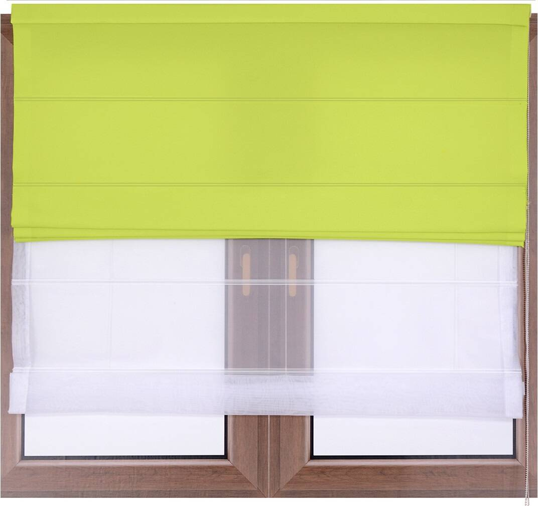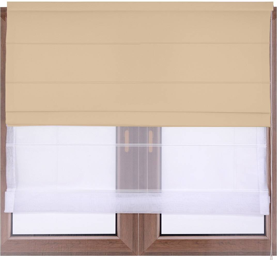 Podwójna roleta rzymska łączy w sobie funkcję firany i zasłony. Rolety rzymskie to prosty, a zarazem niezwykle dekoracyjny element wyposażenia Twojego mieszkania. Wykonane są z doskonałej jakości gładkiego materiału oraz białego woalu, posiadają wszyte specjalne fiszbiny, które przy podciąganiu tworzą dekoracyjne fałdy. Sznurki przeciągnięte są z tyłu rolety poprzez taśmę do rolet rzymskich. Posiadają 2 niezależne systemy sznurkowe, służący do regulacji wysokości zarówno firany jak i zasłony. Wyposażony jest on także w mechanizm samoblokujący, tzn. podciągając roletę automatycznie zatrzymujemy ją na danej wysokości. Roleta swym nowoczesnym wyglądem podkreśli wnętrze każdego stylowego pomieszczenia, tworząc przy tym subtelny, elegancki wystrój. Roleta jest niezwykle elegancka, idealna do salonu, kuchni czy sypialni - wszędzie będzie wyglądać olśniewająco i nadawać blasku Twojemu domowi