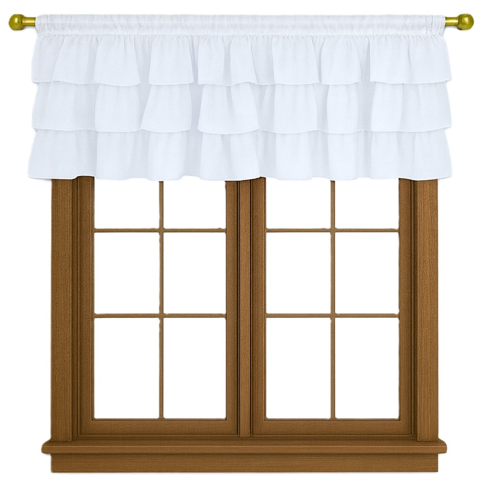 Lambrekin firana z białego woalu Carmen IV wykończona uroczymi falbanami