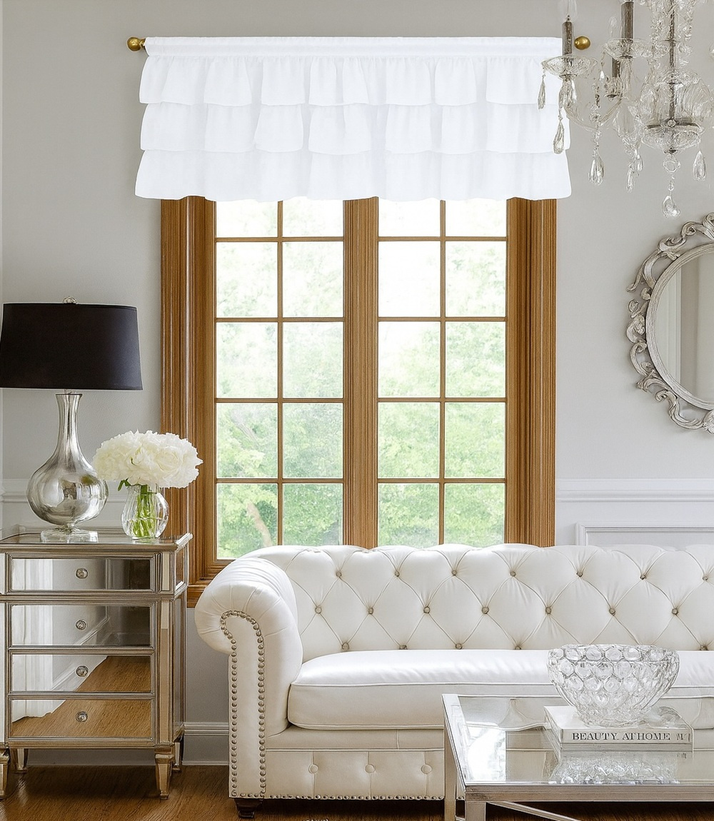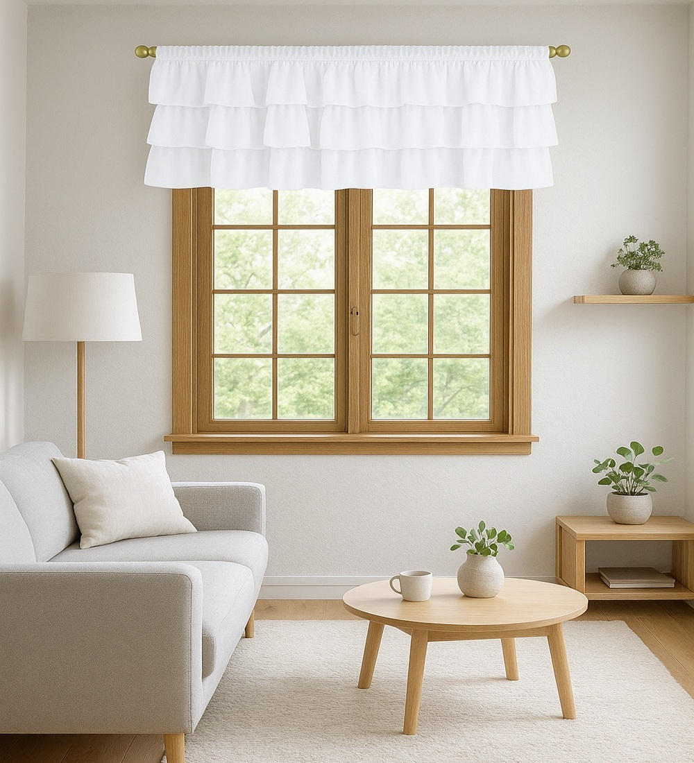 Przepięknie układająca się firana - lambrekin z eleganckimi falbanami nada niepowtarzalny klimat każdemu wnętrzu. Idealna do salonu czy sypialni - wszędzie będzie wyglądać olśniewająco i nadawać blasku Twojemu domowi. Lambrekin jest uszyty z doskonałej jakości białego woalu, dolna część została wykończona trzema falbanami w hiszpańskim stylu. Sliczny lambrkin jest niezwykle elegancki, idealny do kuchni salonu, sypialni czy pokoju dziecka - wszędzie będzie wyglądać olśniewająco i nadawać blasku Twojemu domowi.
