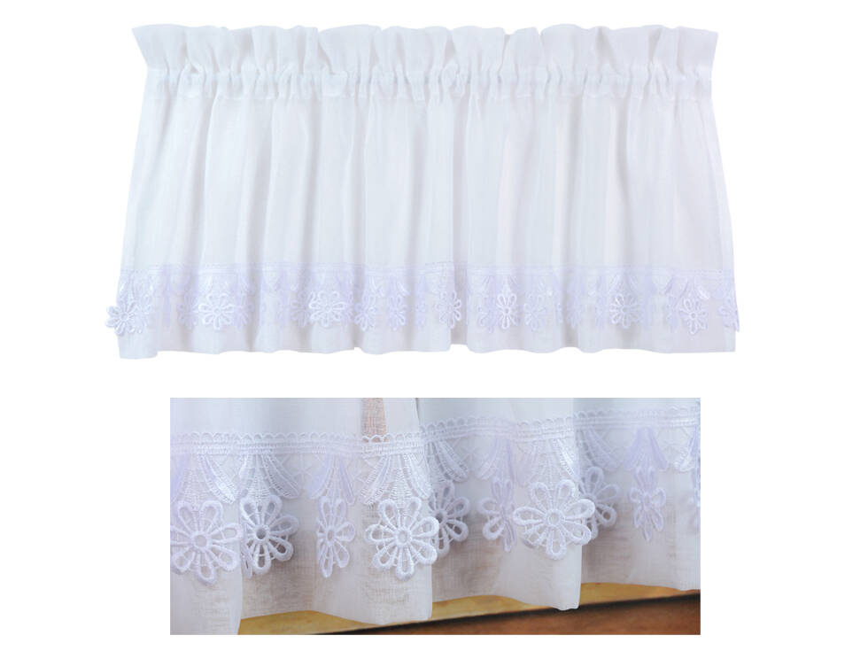Zazdrostka lambrekin z białego woalu Parma ozdobiona uroczą gipiurą