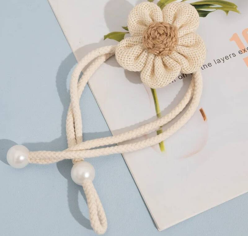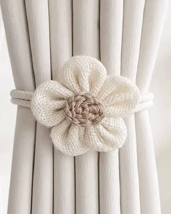 Śliczne klamry kwiaty w stylu boho stworzą niepowtarzalny klimat w każdym wnętrzu, zarówno rustykalnym, klasycznym, nowoczesnym jak i glamour. Wykonane są z wyjatkowej tkaniny będącej połączeniem bawełny oraz juty. Posiadają efektowne zakończenie na końcach plecionego sznurka w postaci eleganckich perełek. Swym naturalnym wyglądem podkreślą wnętrze każdego stylowego pomieszczenia, tworząc przy tym subtelny, elegancki wystrój. Idealne do salonu, kuchni, sypialni czy pokoju dziecka - wszędzie będą wyglądać olśniewająco i nadawać blasku Twojemu domowi.
