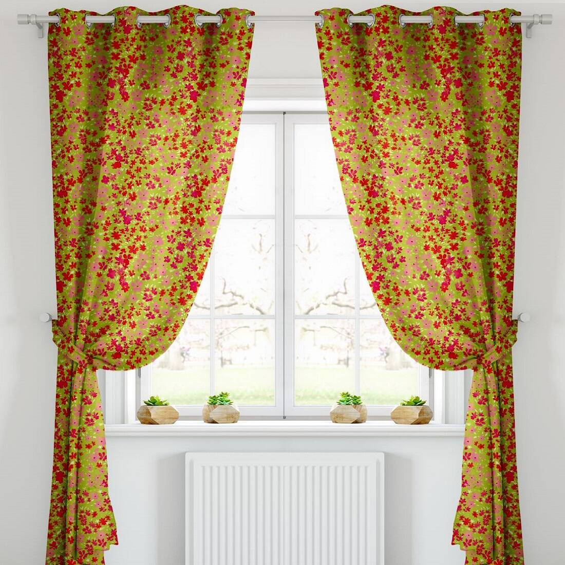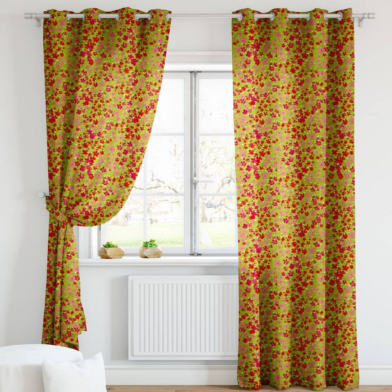 Opinie o Zasłona seledynowa w wzory Rubi różowe drobne kwiaty łączka wzór J7