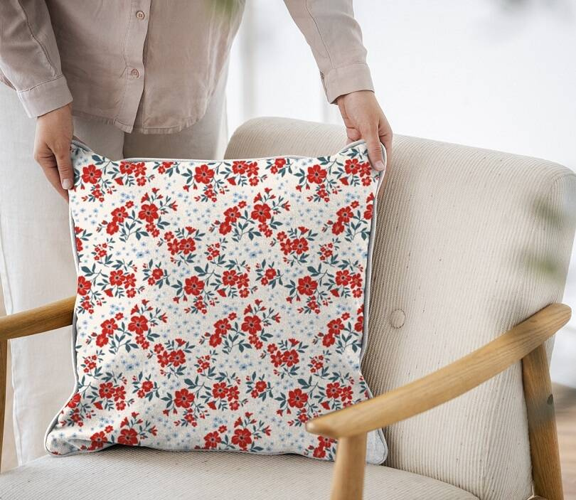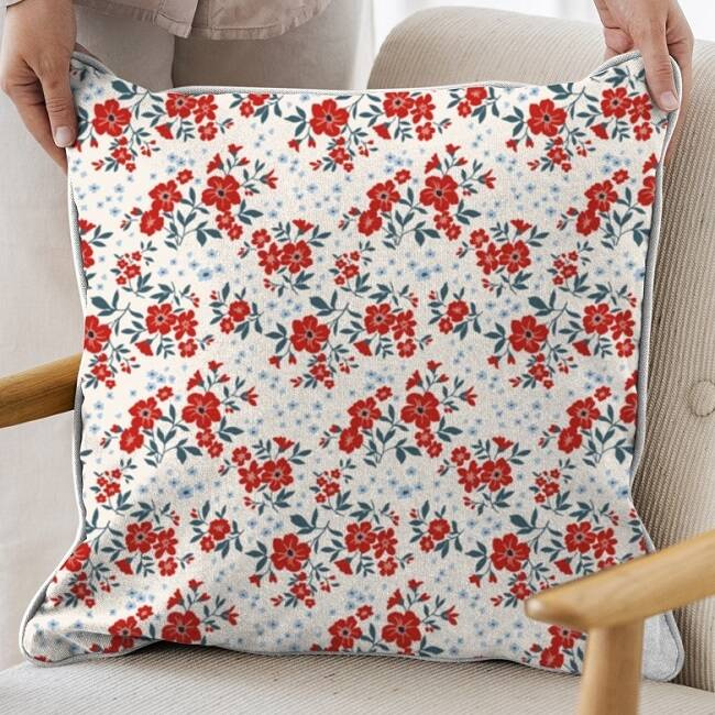 Ozdobna poszewka Rubi biała w drobne kwiaty łączka wzór J9