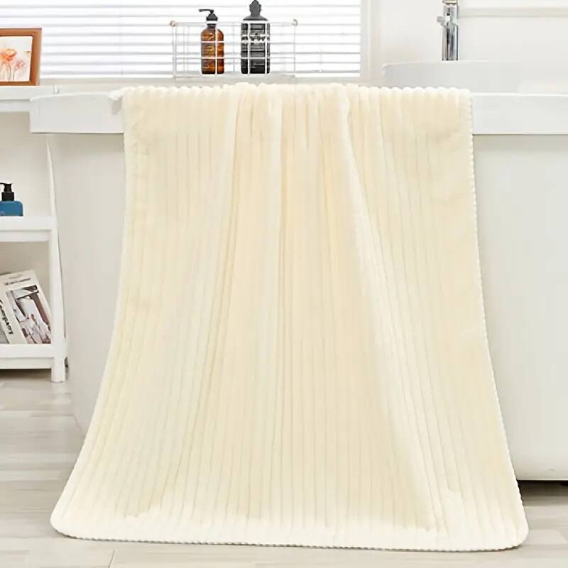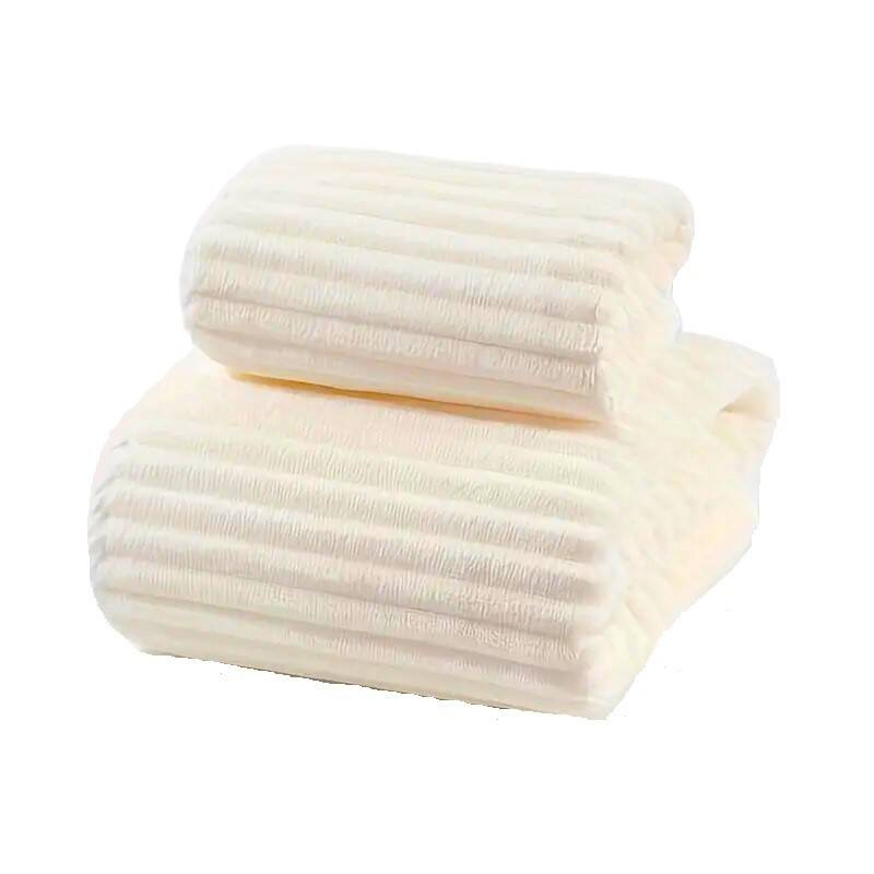 Ręcznik kapielowy w prążki chłonny miękki bezpyłowy do twarzy szybkoschnący wanilowy