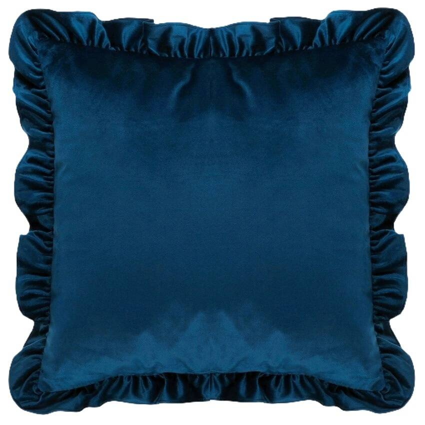 Urocza poszewka welurowa aksamitna z falbanami na poduszkę granatowa