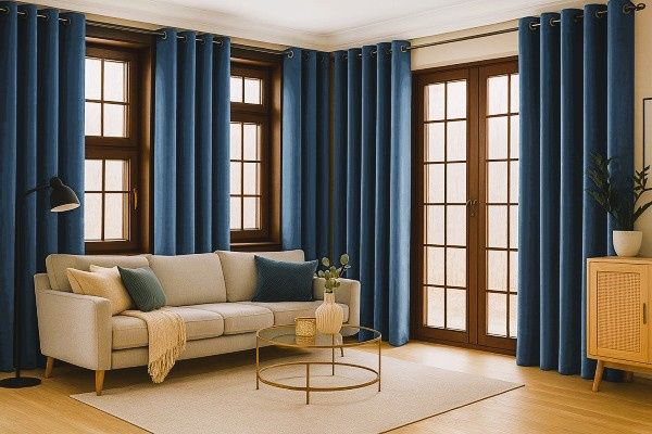 Zasłony o szerokości 290 cm są łączone z dwóch części