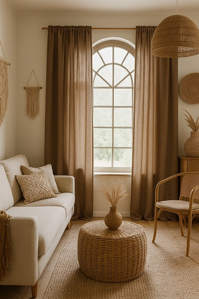 Stylowe zasłony z naturalnego lnu elegancka lniana zasłona len ciemny beż 4