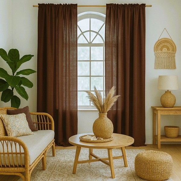 Stylowe zasłony z naturalnego lnu elegancka lniana zasłona len ciemny brązowy 10