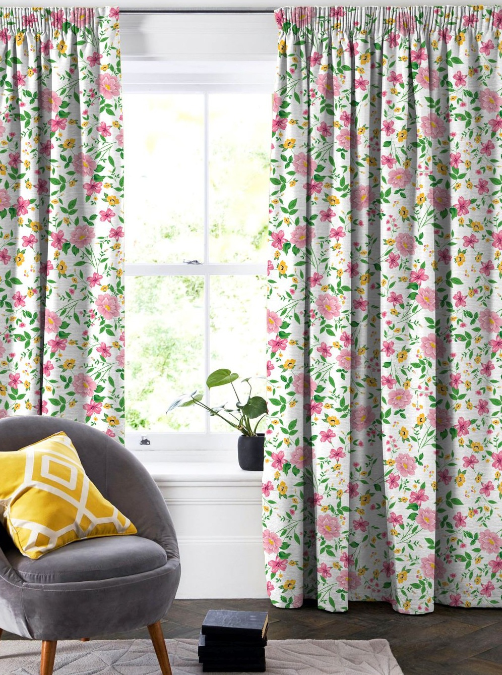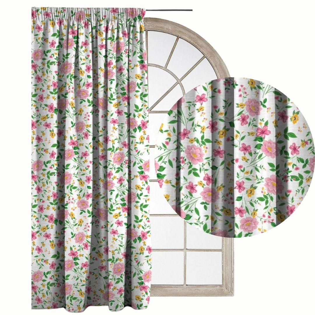 Zasłona Glam aksamitna welurowa biała w śliczną kolorowa łąkę G23 welwet