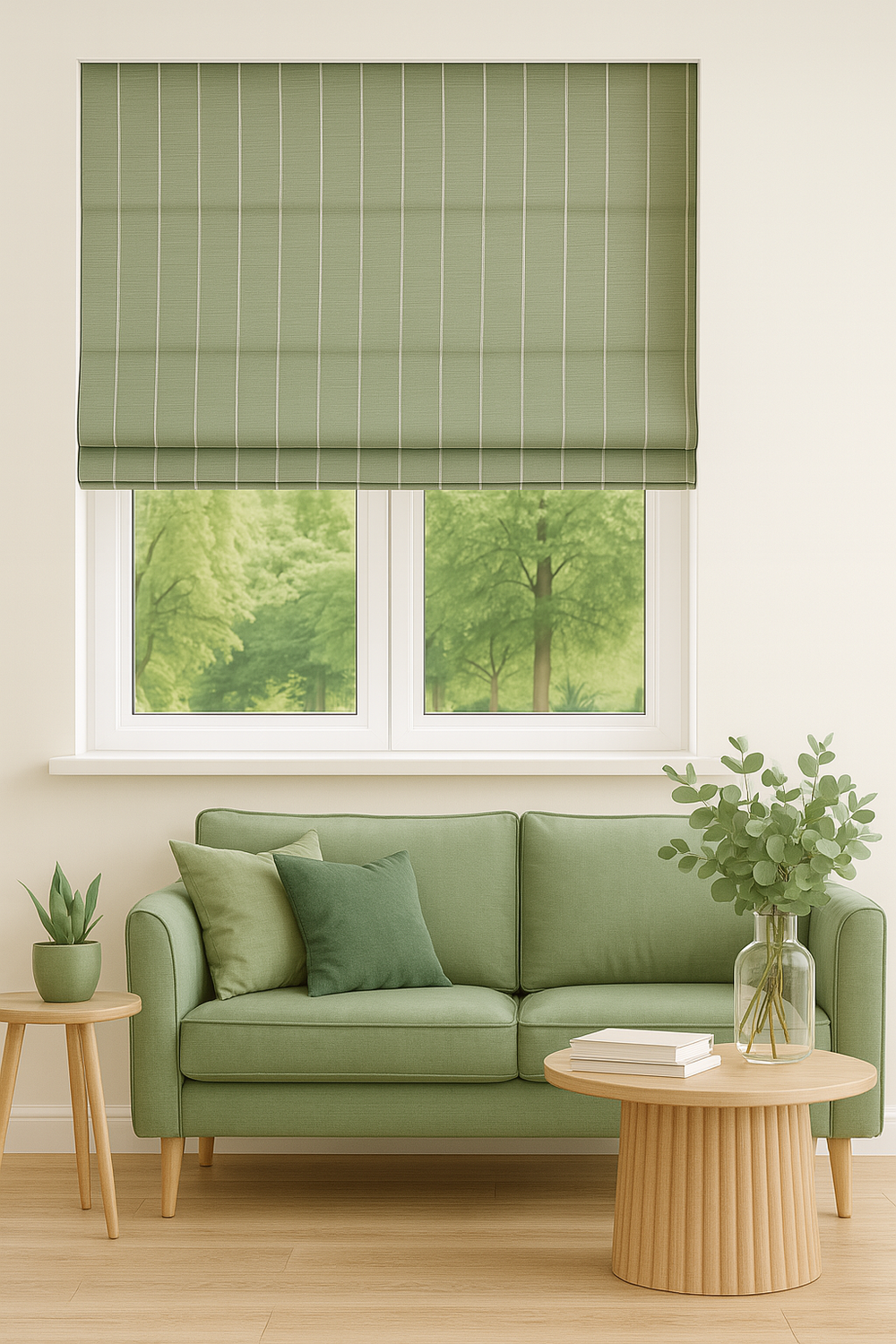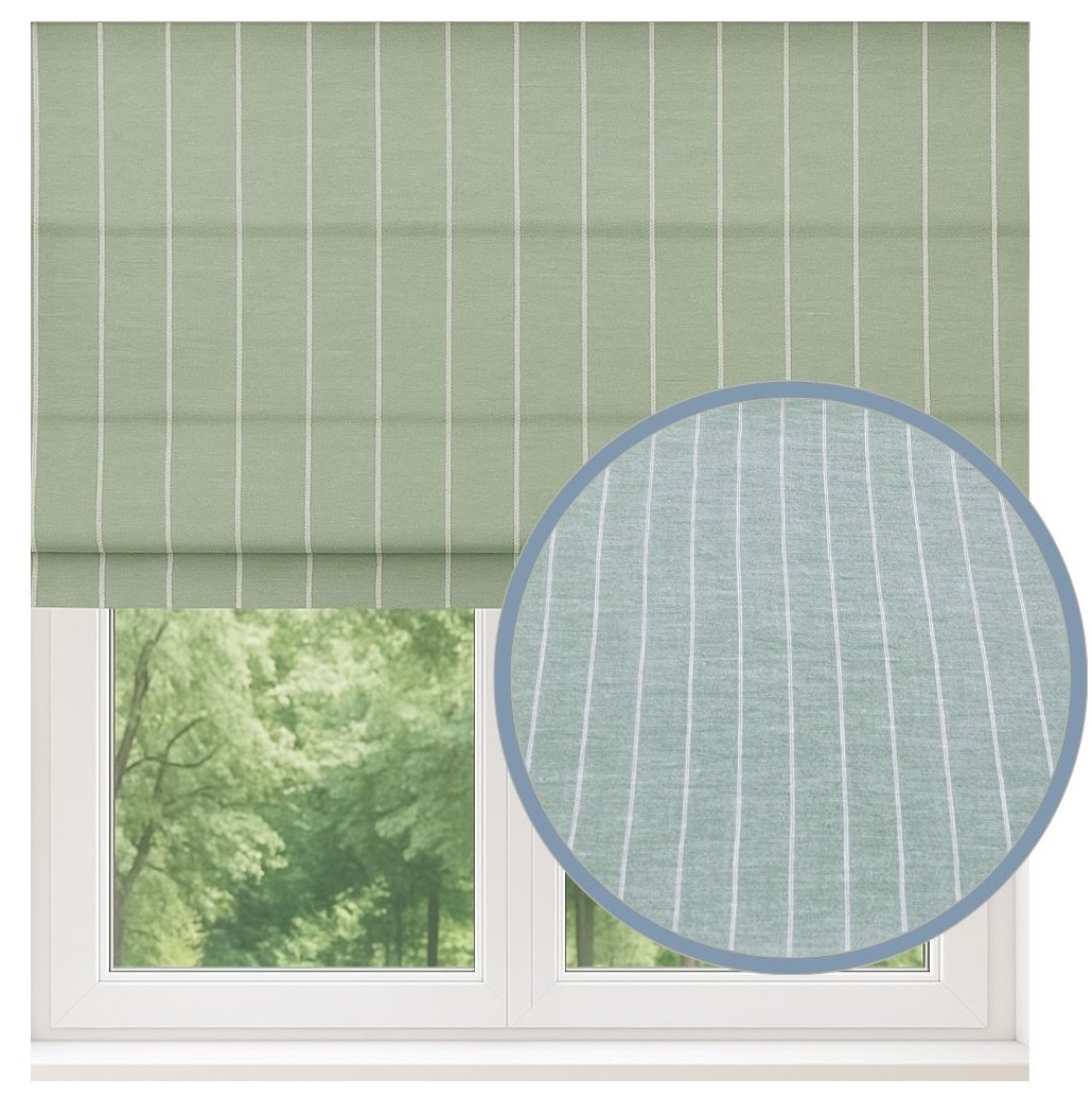 Roleta rzymska lniana len w prążki z naturalnego lnu w pionowe paski pastelowa zieleń