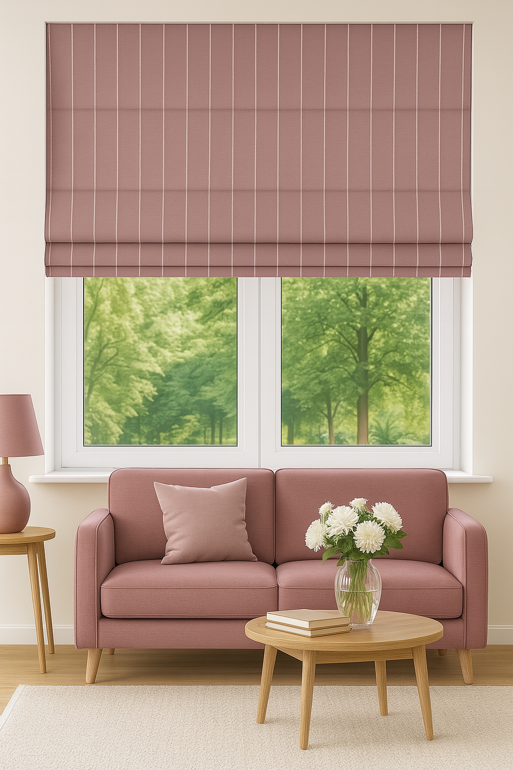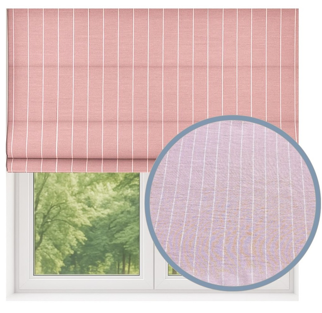 Roleta rzymska lniana len w prążki z naturalnego lnu w pionowe paski wrzosowy róż