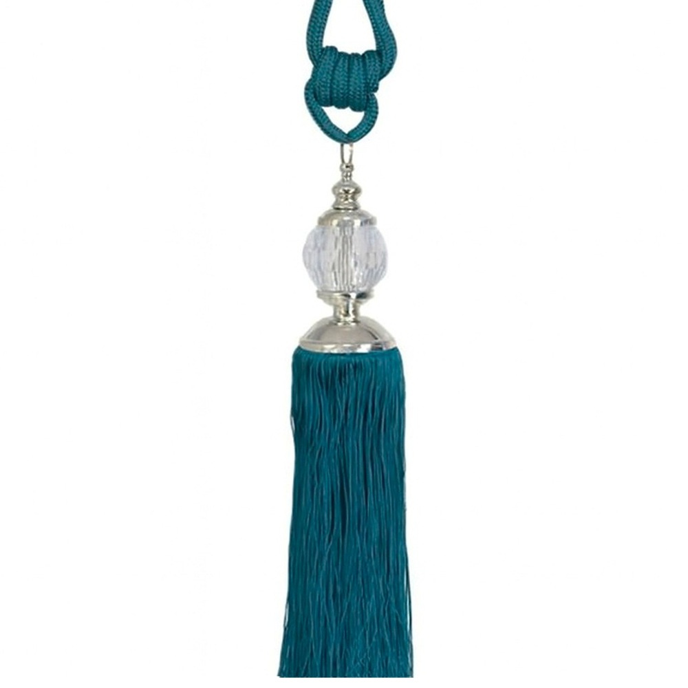 Ekskluzywny chwost do zasłon z kryształem ciemny turkusowy