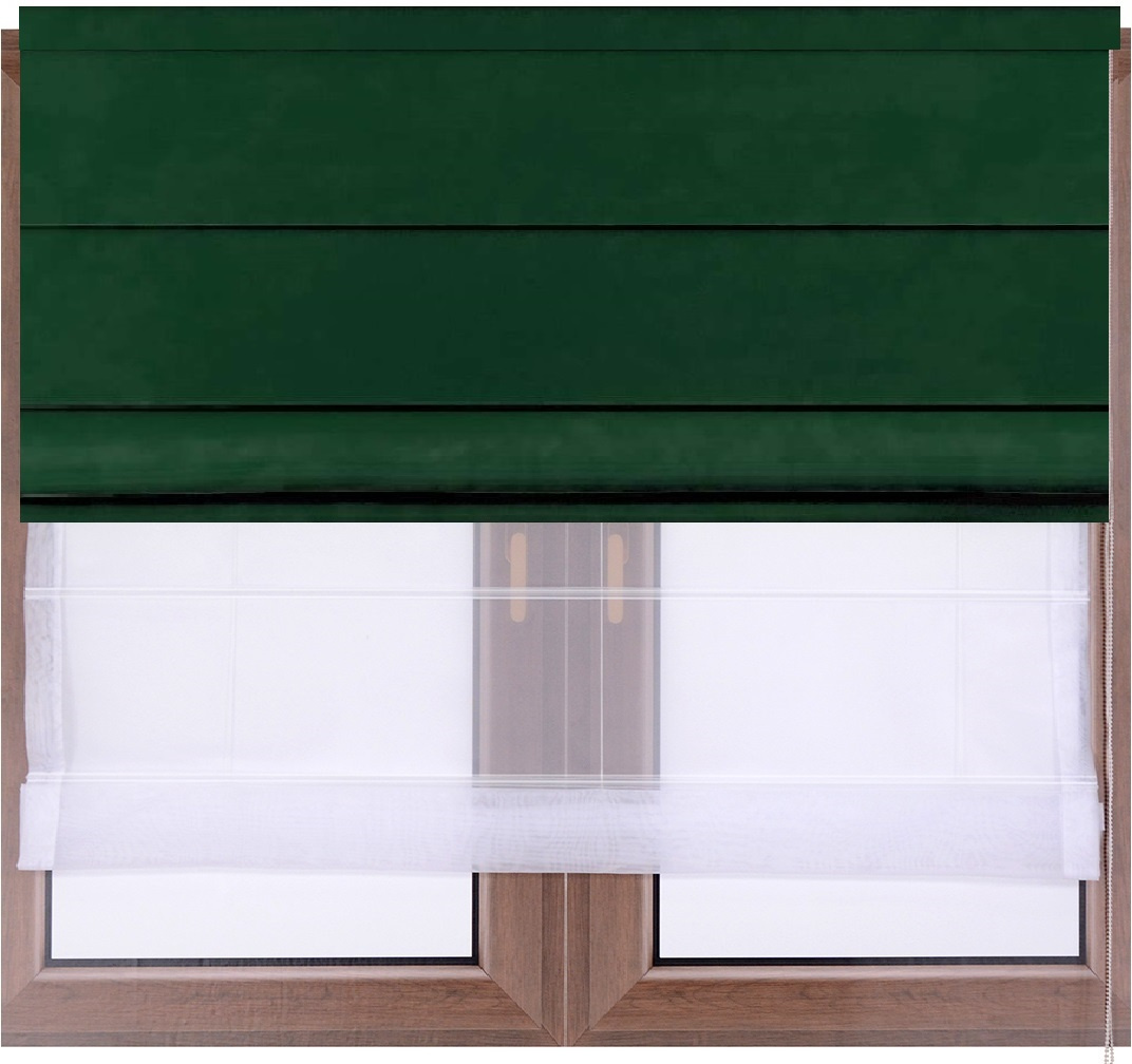 Roleta rzymska DUO z aksamitnego weluru butelkowa zieleń i białego woalu łańcuszek