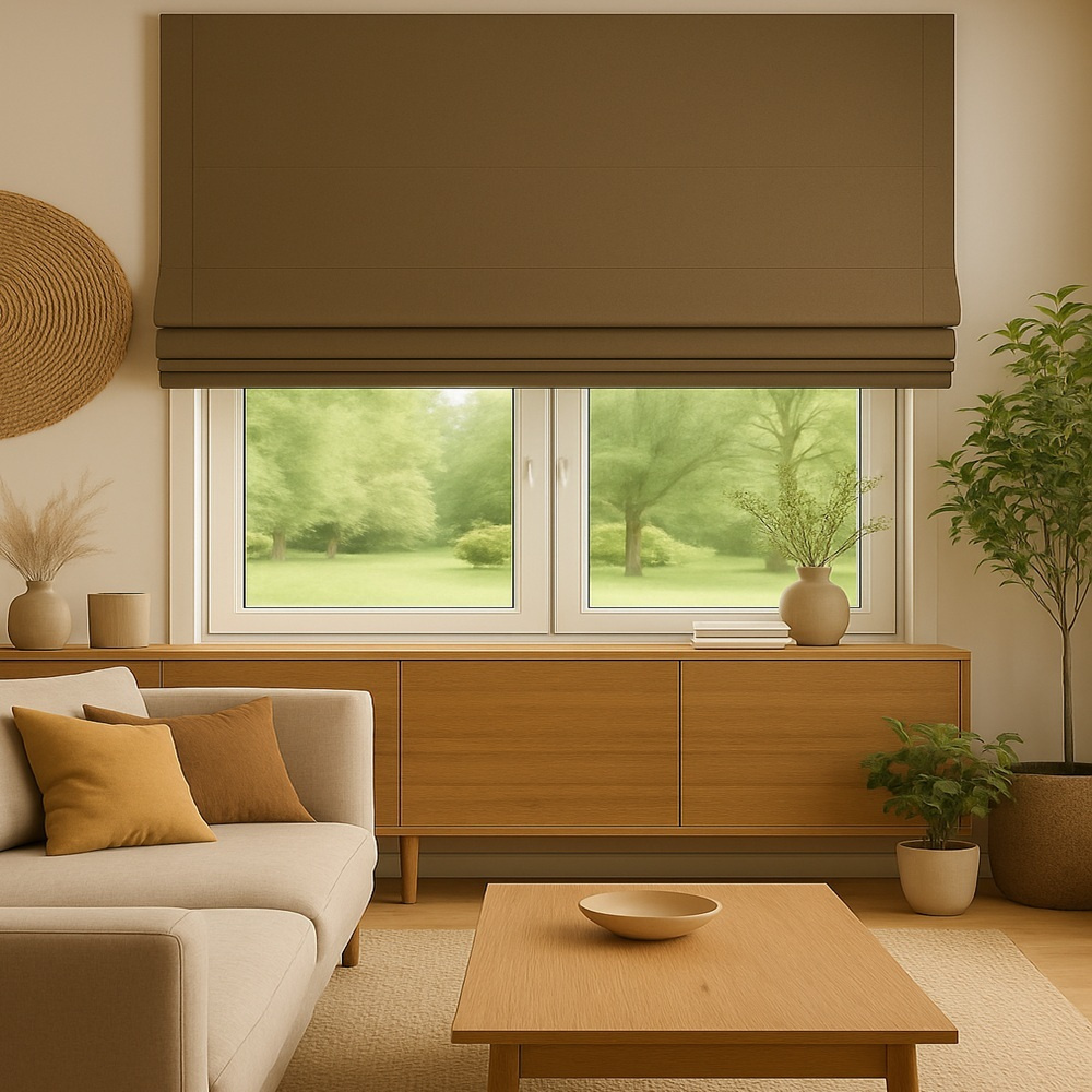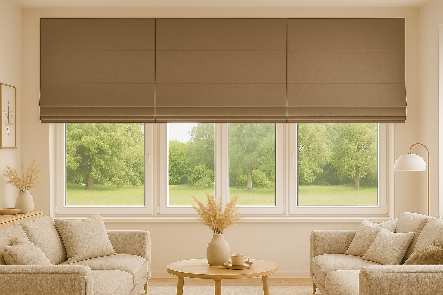 Roleta rzymska zaciemniająca do 100 % blackout na wymiar ciemno beżowa
