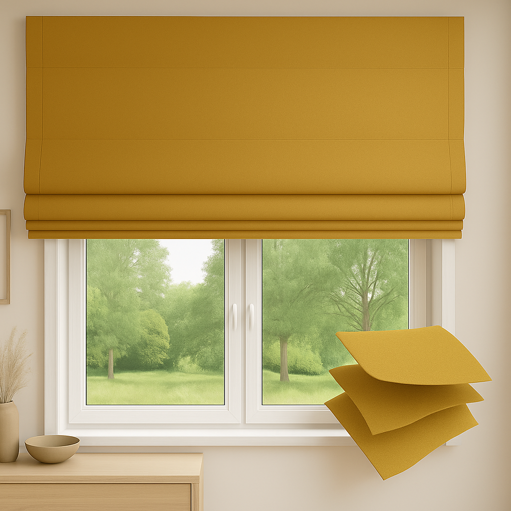 Roleta rzymska zaciemniająca do 100 % blackout na wymiar musztardowa miodowa