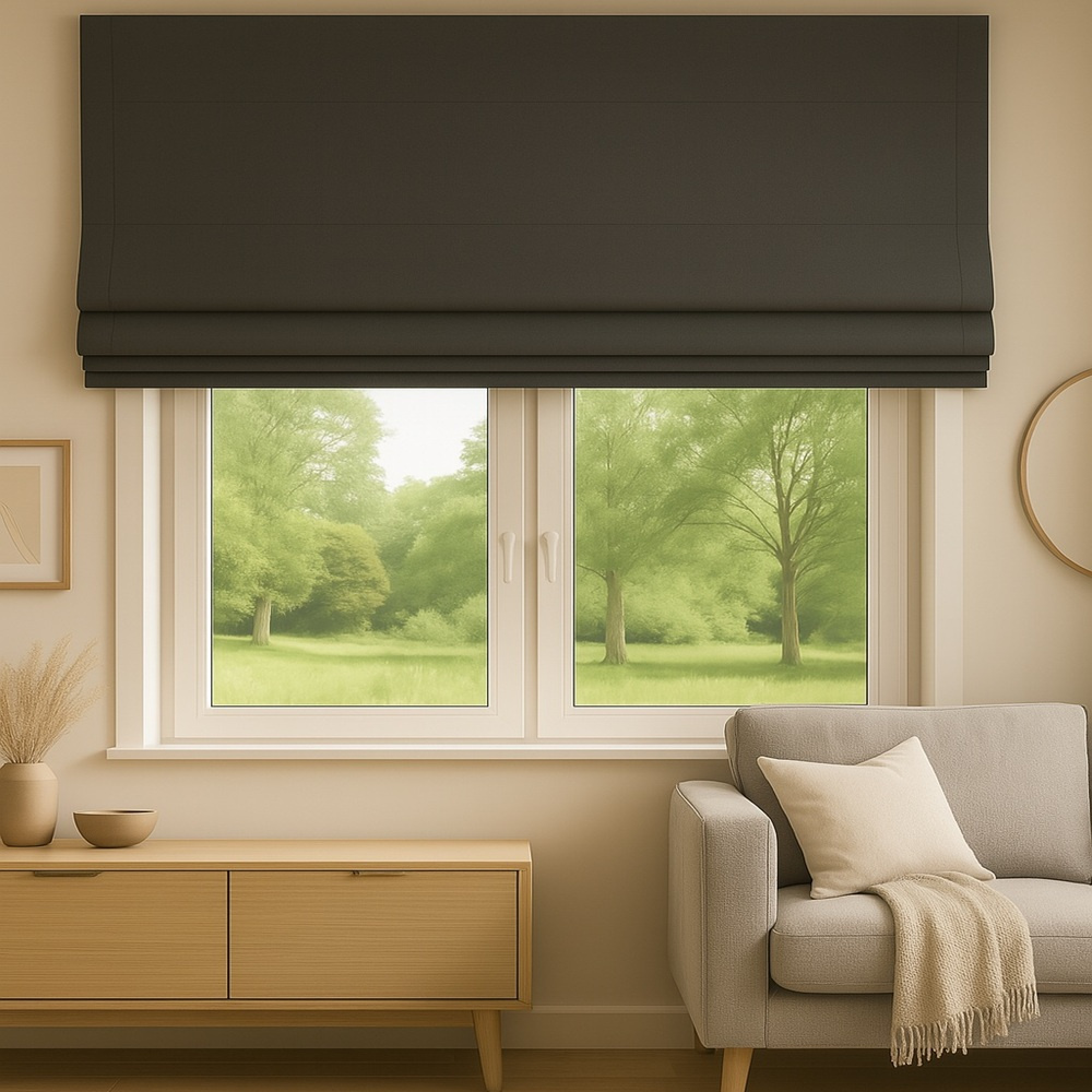 Roleta rzymska zaciemniająca do 100 % blackout na wymiar ciemno szara