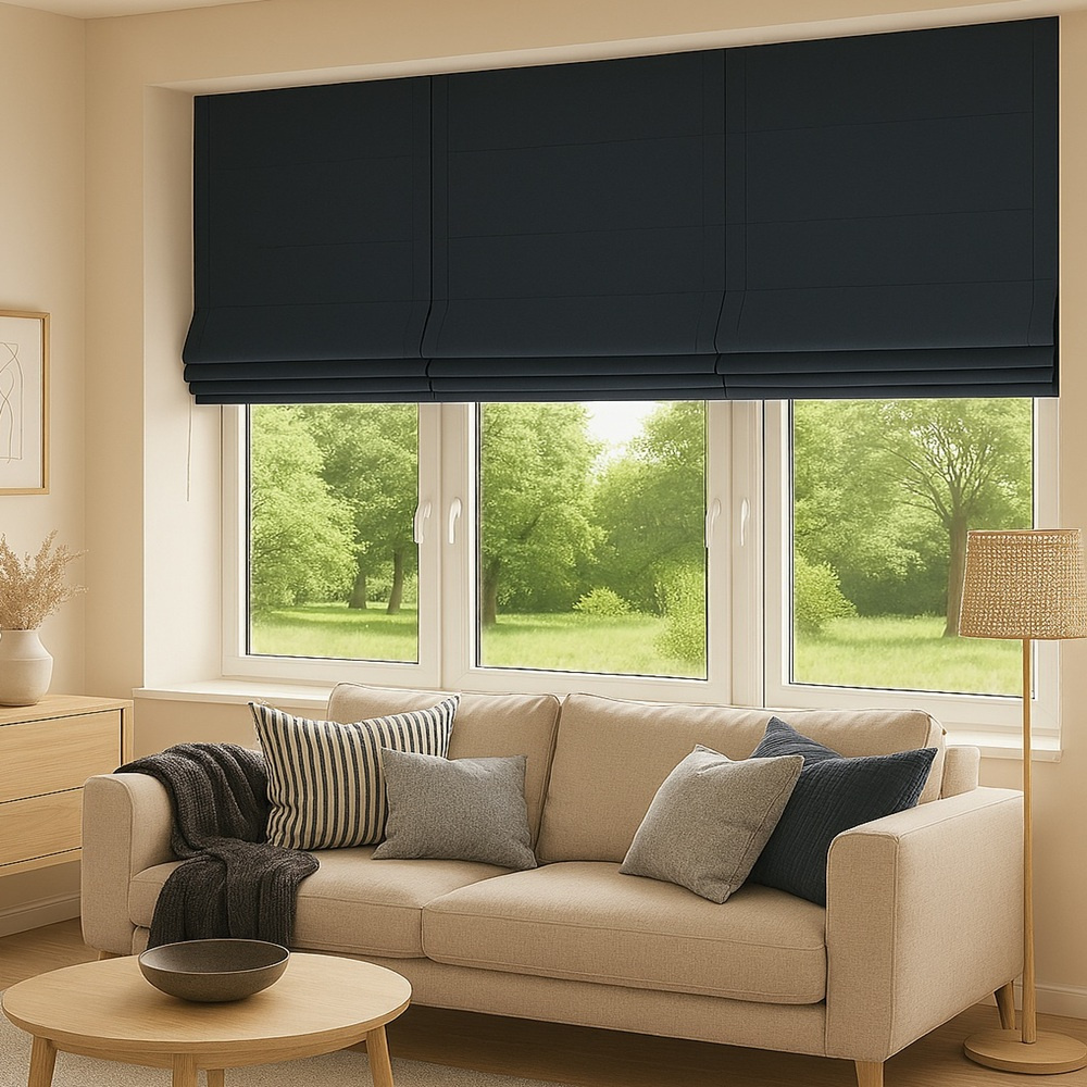Roleta rzymska zaciemniająca do 100 % blackout na wymiar granatowa