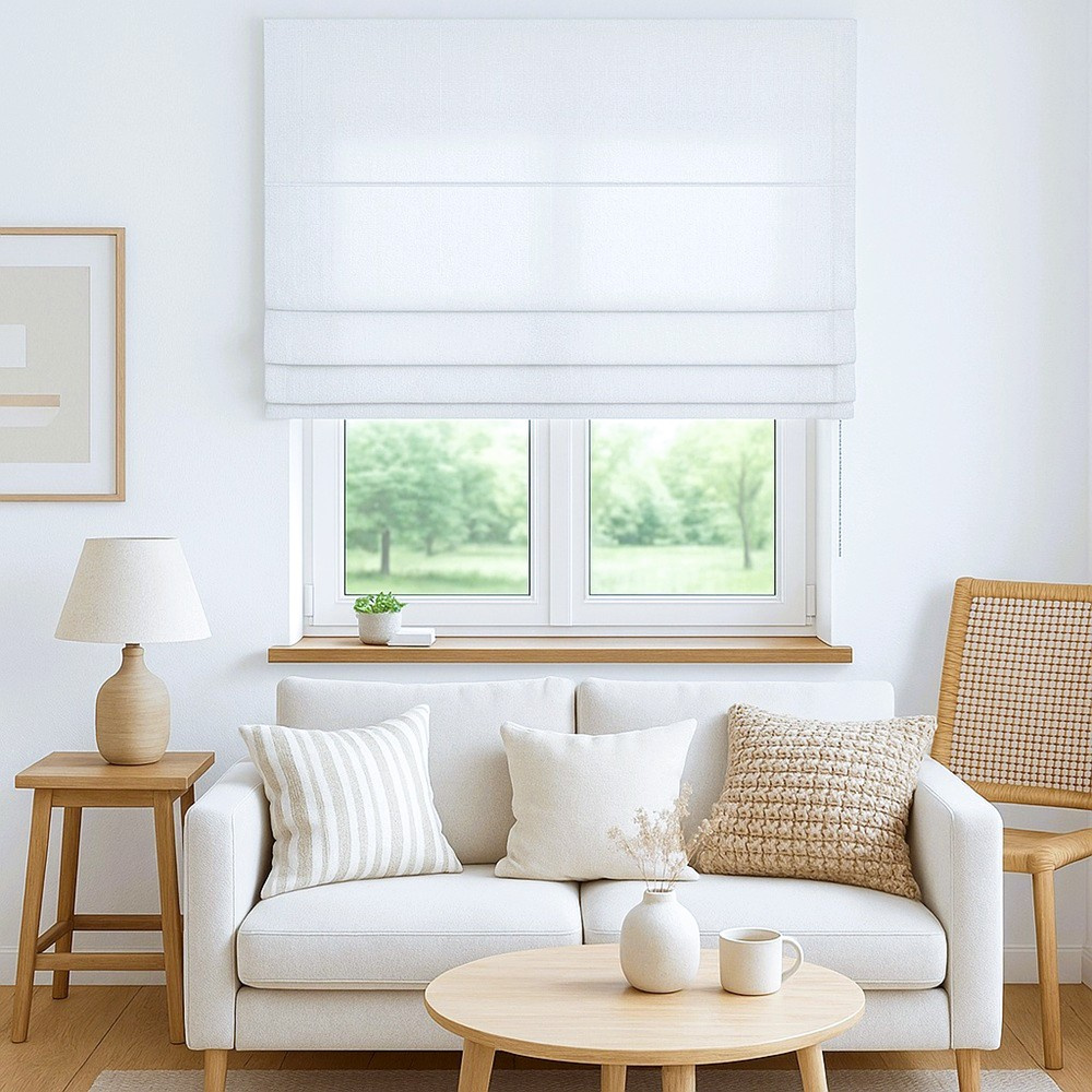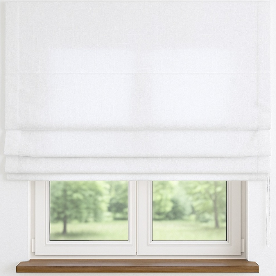 Roleta rzymska biała lniana struktura lnu elegancki naturalny batyst len