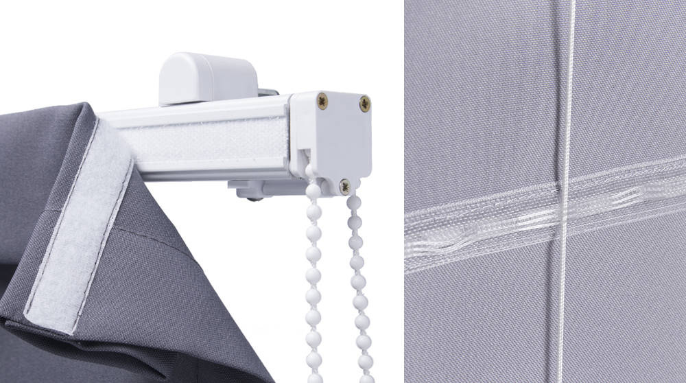 Rolety o szerokości powyżej 130 cm posiadają łączenie materiału na fiszbinie