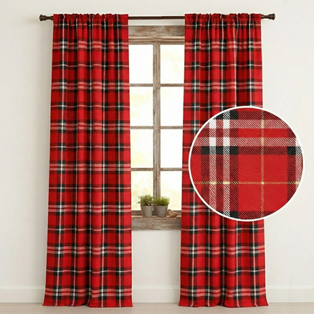Zasłona w kratę czerwono bordową klasyczna dekoracja okna