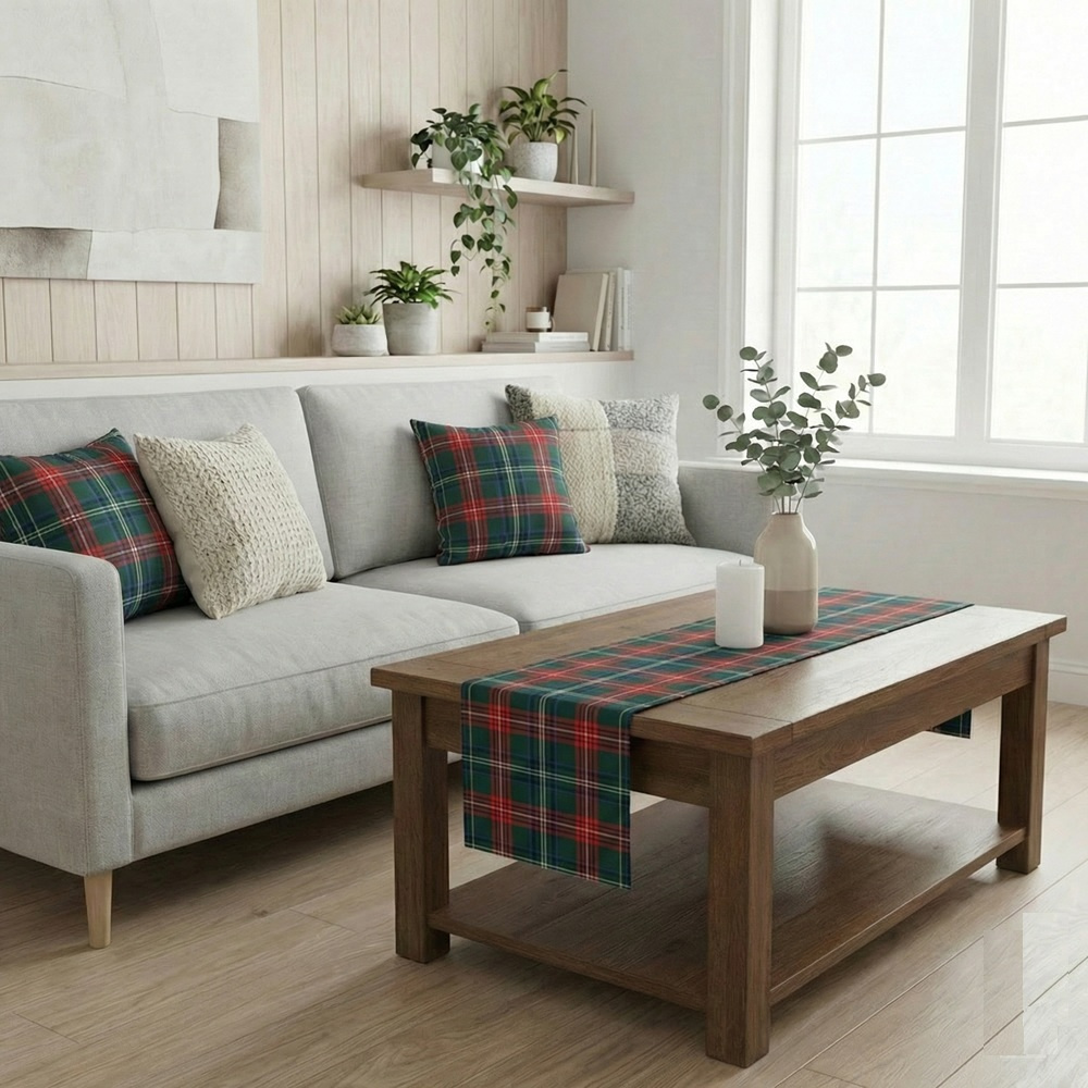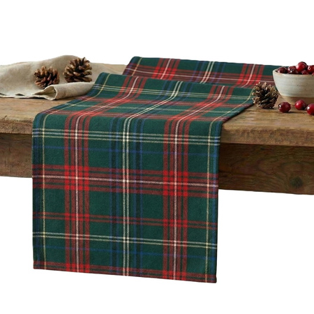 Bieżnik w kratę czerwono zielony klasyczna dekoracja na stół ławę
