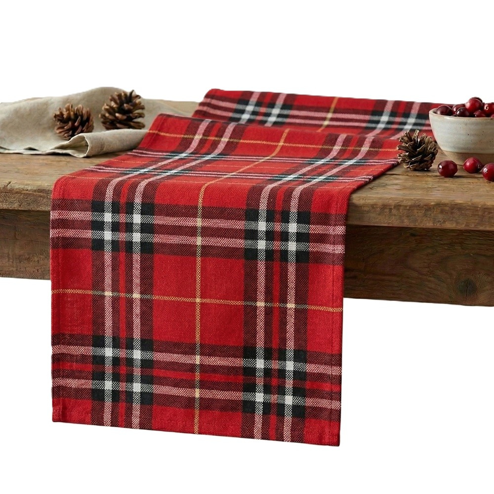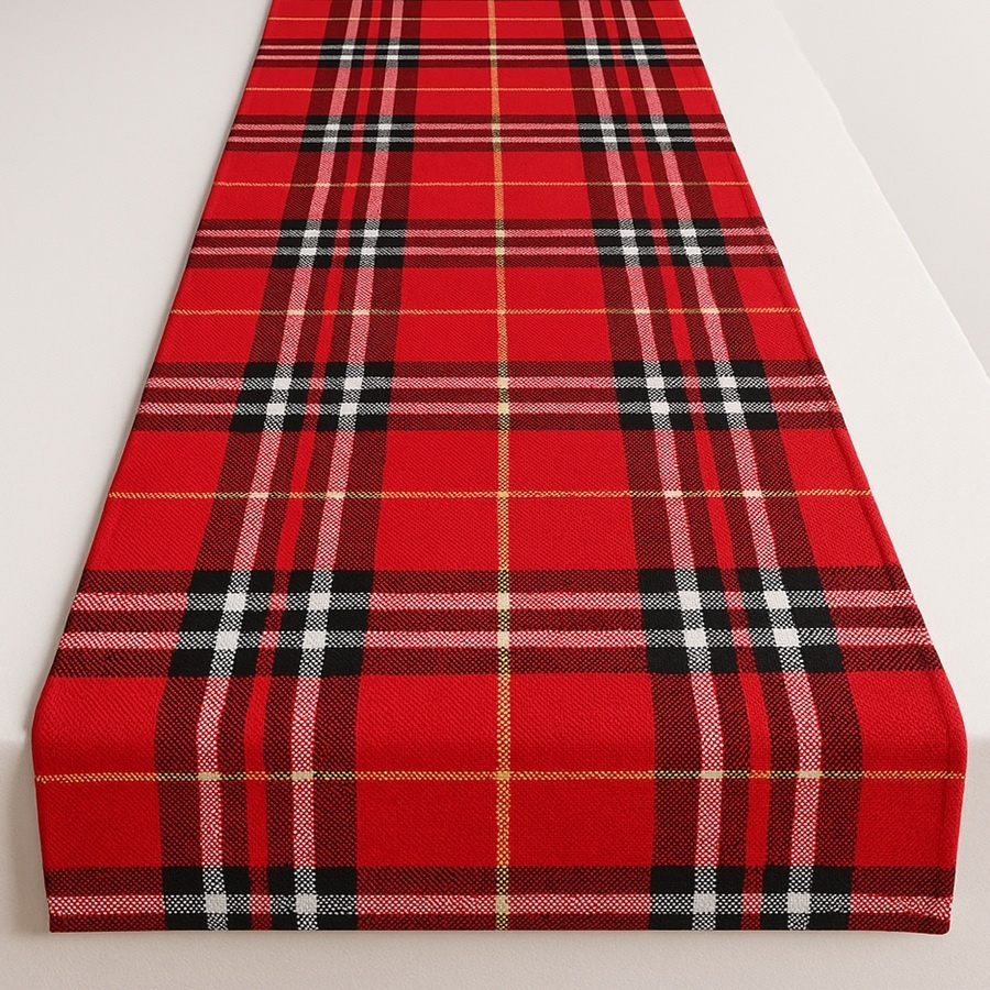 Bieżnik w kratę czerwono bordowy klasyczna dekoracja na stół ławę